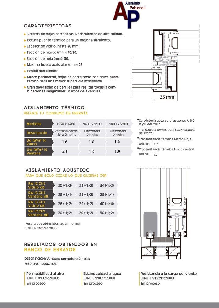 1. Corredera con la hoja de corte recto y con rotura puente térmico